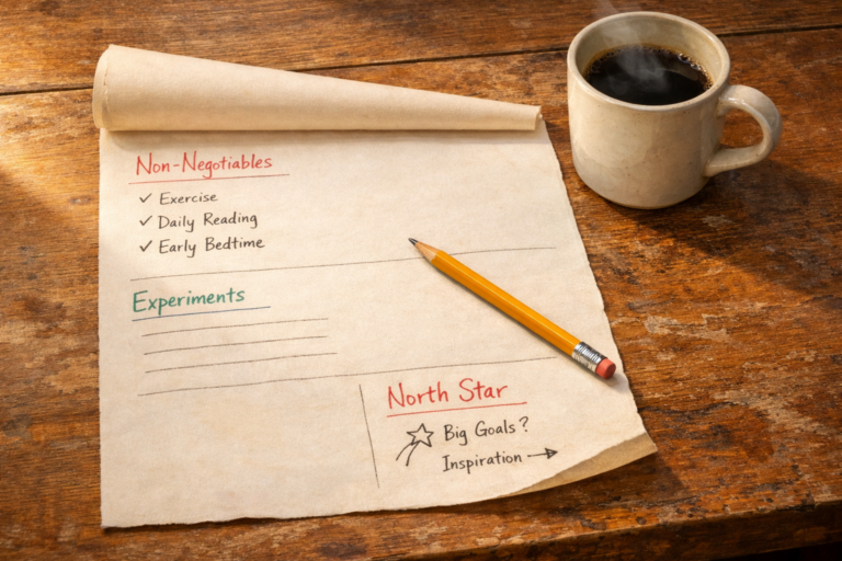 This week: Draft your blueprint. One page, three Non-Negotiables, two Experiments, one North Star sentence. Find your corner table, your good coffee, and give yourself twenty minutes. That’s enough to begin.